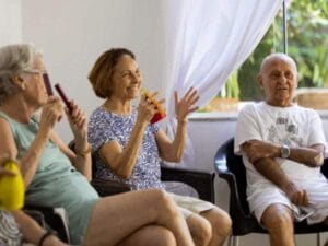 A Musicoterapia na Vila Marina, além de provocar a sensação de bem-estar, maior facilidade em